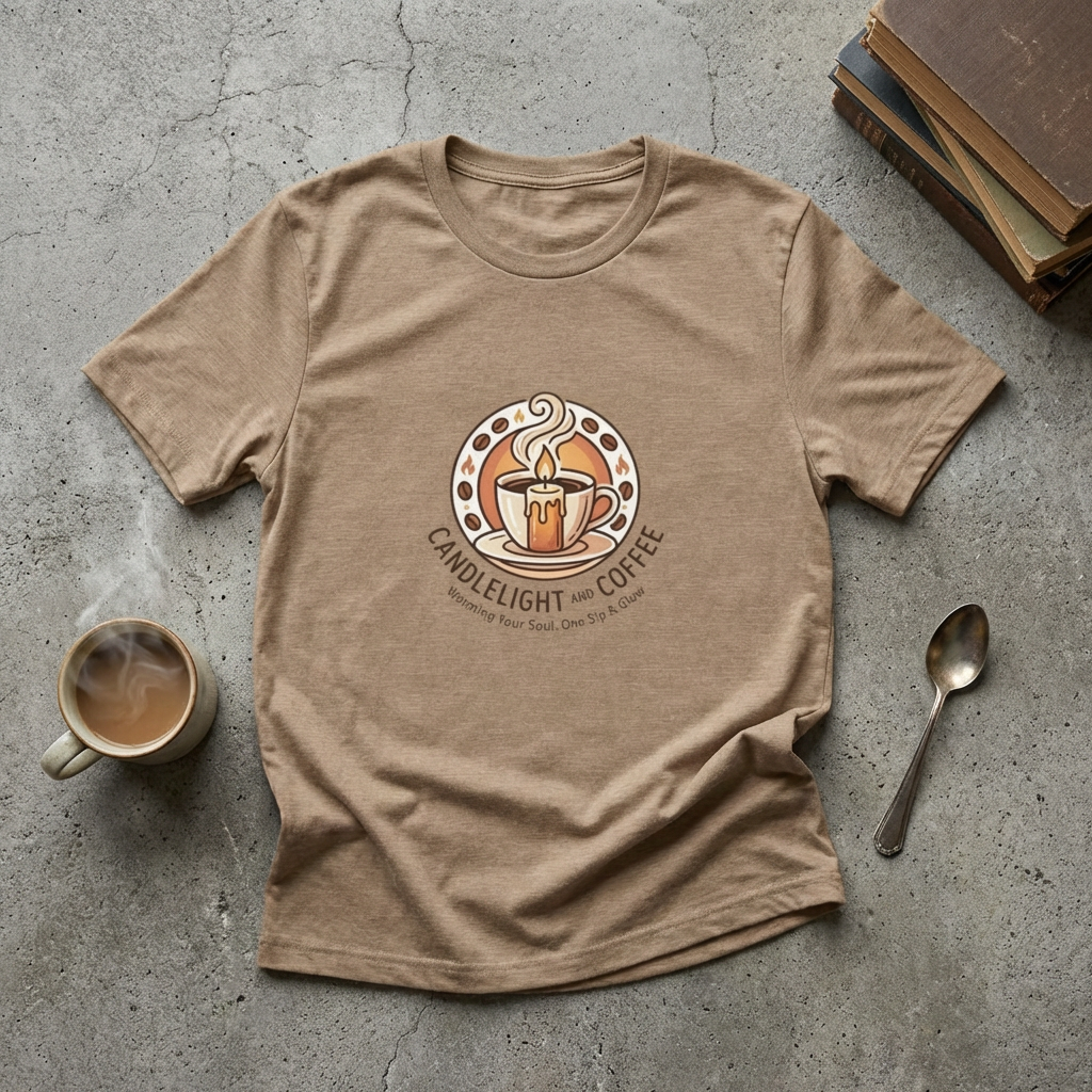 Candlelight and Coffee Tee — Cozy Coffee Shop Vintage Cup T-Shirt